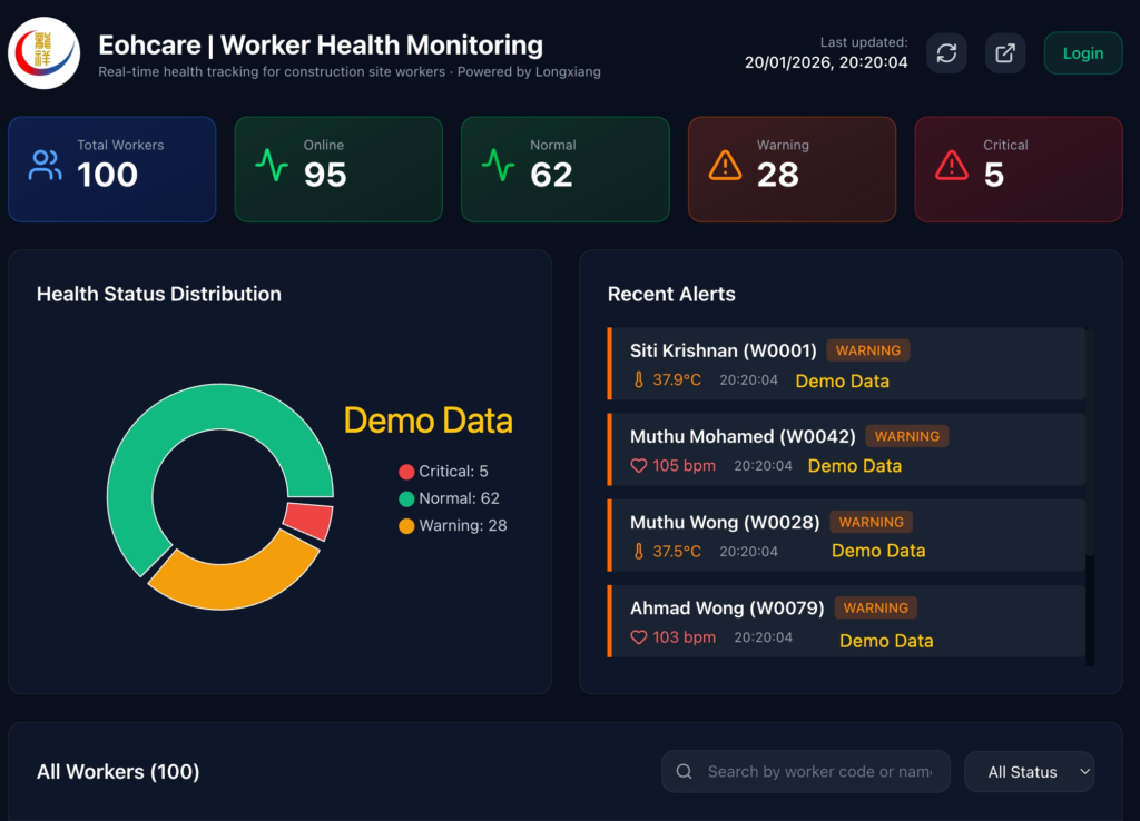 Real-time tracking of Heart Rate, Temp, and SpO2. Proactively prevent heatstroke and overexertion in high-intensity labor.